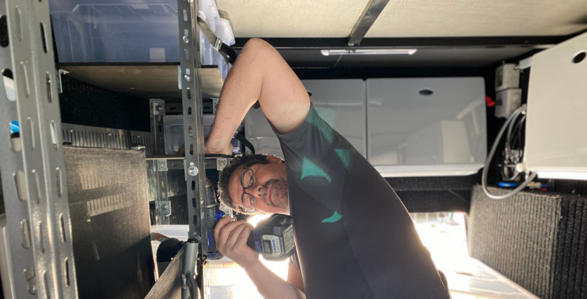 Il garage, concepito essenzialmente per il trasporto di biciclette o uno scooter, viene sfruttato per trasportare tavoli, seggiole, cavi corrente, tubo per rifornimento e tutto quello che vi viene in mente, perché spazi idonei non sempre sono disponibili, tranne nei mezzi con il doppio pavimento o con gavoni dedicati. Ma tutta questa roba che si carica va fissata, per evitare un rumore continuo quando si viaggia e che si danneggi, l’organizzazione è fondamentale! I costruttori di camper si sono si sono limitati ad applicare un paio di barre ed occhielli, che costringono il camperista ad un giungla di fasce ed elastici per cercare di fermare gli oggetti, che vengono avvolti come un salame e richiedono un lungo lavoro per liberarli, oppure chi tenta di bloccare tutto con il sistema dell’incastro, ma tra buche e curve si rischia di rovesciare tutto in terra dopo aver aperto il portellone. Prima di cominciare o scegliere quale soluzione adottare, guardatevi intorno, cercate di capire le vostre esigenze di carico, qualsiasi cosa progettate nel fai da te dovrebbe essere reversibile, in un’ottica di rivendibilità del mezzo. Le opzioni possono essere quella di creare una struttura in legno, oppure in ferro o acquistare qualcosa di già pronto, ma sarà sempre qualcosa di universale, che non vi farà sfruttare tutto lo spazio. La struttura in legno sarà facile da realizzare, in fondo con qualche taglio di legno ed un avvitatore, ognuno sarà in grado di costruire qualcosa, ho scelto questo sistema nel camper precedente, però con il tempo mi sono reso conto che era troppo vincolante, ovvero una volta costruiti dei vani e alloggi rimanevano dei spazi obbligati, a meno che non si rimetteva mano all’avvitatore per lo smontaggio e si tagliava nuovamente qualcosa con il seghetto alternativo.