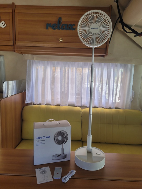 Ci sono quelle situazioni dove un ventilatore che muove l’aria è sufficiente, abbiamo anche 2 turbovent, sempre in zona giorno e zona notte, che garantiscono un ottimo ricircolo, specialmente se utilizzati uno in immissione e l’altro in espulsione, ma non si ha la sensazione piacevole della brezza sul viso. Visto la rivoluzione energetica in fatto di batterie ne ho voluto provare uno ricaricabile e richiudibile, l’ideale per l’utilizzo in camper, perché quelli casalinghi, oltre a dover essere alimentati a 220v sono ingombranti, e come sempre su Amazon qualcosa si trova. Inutile cercare di scartare il made in cina, oramai tutto proviene da lì, ma ci sono prodotti cinesi e cinesate, basta cercare e sfruttare la possibilità di provare i prodotti offerta da Amazon. I parametri su cui mi ero concentrato erano, funzionalità, portabilità, rumore emesso e potenza, il prezzo per ultimo, perché se si trova il prodotto giusto sono disposto a pagarlo il giusto. La scelta è ricaduta su Ashu, una delle marche cinesi, ma sopra la media per quanto riguarda la qualità, che mi ha incuriosito con il suo modello Jelly Comb che ruota, infatti di questi ventilatori a batteria se ne trovano molti, ma quasi mai con la funzione oscillazione, ordinato!